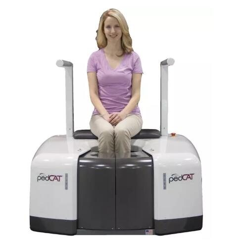 比如上面這款專用于足部和踝部掃查的CT成像系統(tǒng),患者在進行CT掃查時只需要站在上面即可,雙腳站或者單腳站都可以,當(dāng)然,如果患者不是那么方便站著做完CT掃查,也可坐在上面。