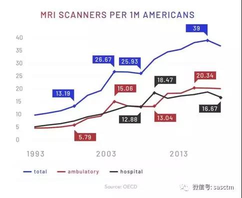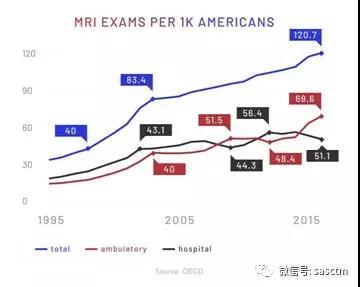 到2016年,平均每1千名美國人大約接受了121次MRI掃描檢查。而在加拿大和澳大利亞,這一數(shù)字分別是56和43次。最近的觀點是MRI是美國過于昂貴的醫(yī)保支付系統(tǒng)的終極力證。成為了拖垮美國醫(yī)保費用的“原罪”之一。