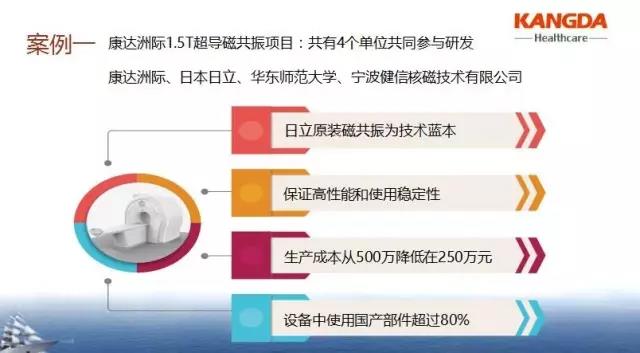 這個(gè)項(xiàng)目共有4個(gè)單位共同參與研發(fā)和產(chǎn)業(yè)化,分別是康達(dá)洲際、日本日立、華東師范大學(xué)、寧波健信核磁技術(shù)有限公司,研發(fā)的產(chǎn)品則是以日立1.5T超導(dǎo)磁共振為基礎(chǔ)上進(jìn)一步升級(jí)——一臺(tái)完全與世界最先進(jìn)技術(shù)同步的磁共振設(shè)備。