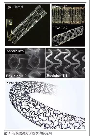 現(xiàn)階段開發(fā)應(yīng)用的較大的產(chǎn)品有:日本Igaki Medical Planning 公司研發(fā)的Igaki-Tamai(PLLA)支架,美國(guó)Abbott Vascular 公司的BVS(PLLA)血管支架,Reva Medical 公司研發(fā)的REVA(PC)支架,以及我國(guó)山東華南生物科技有限公司的Xinsorb 支架(圖1)。